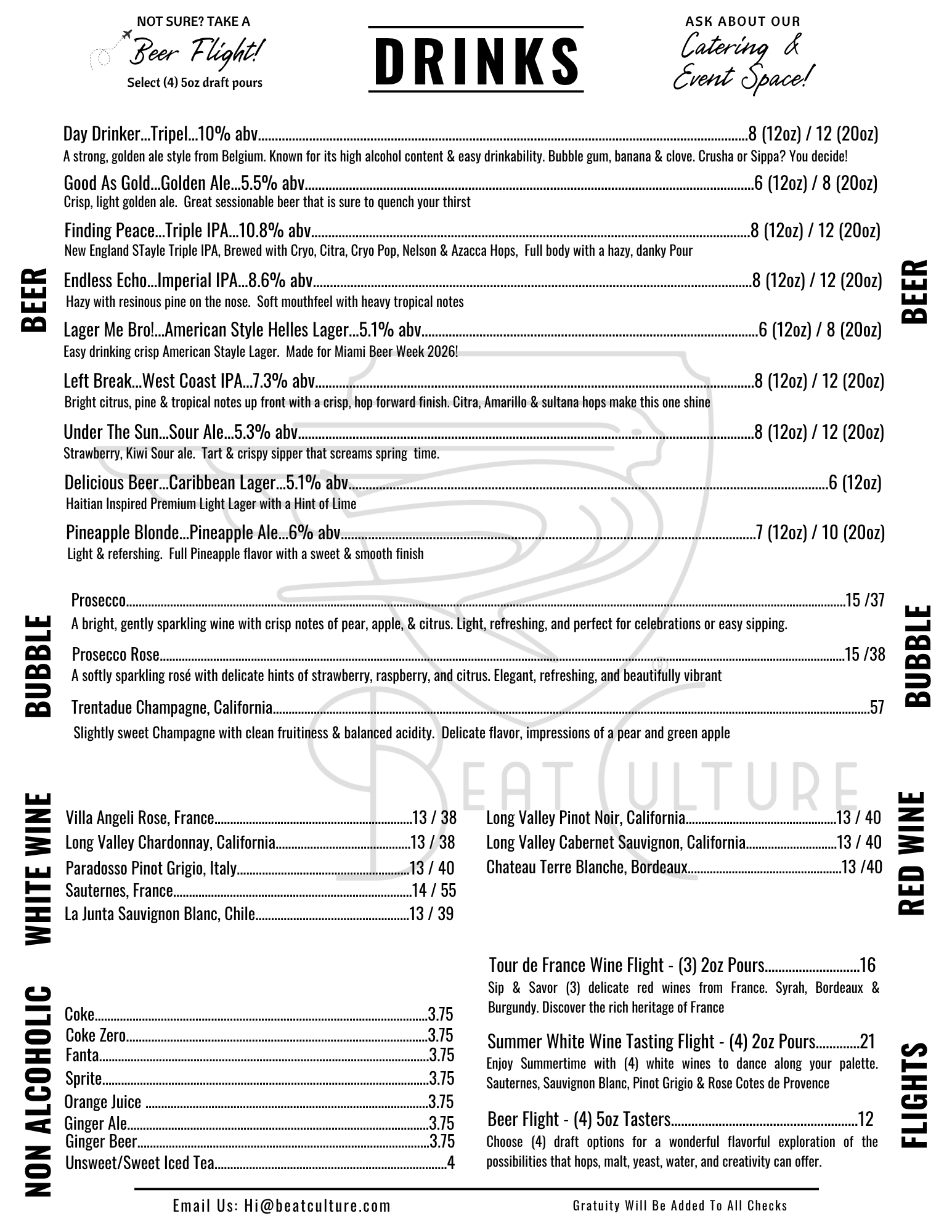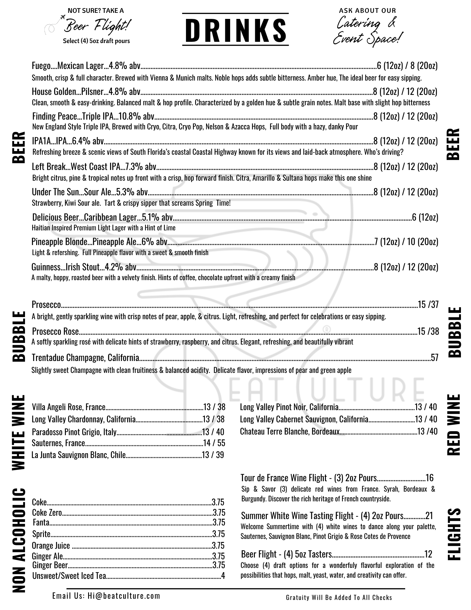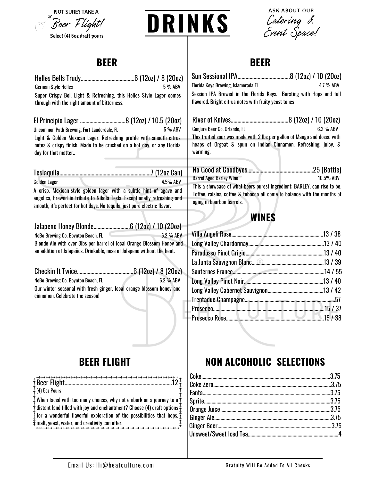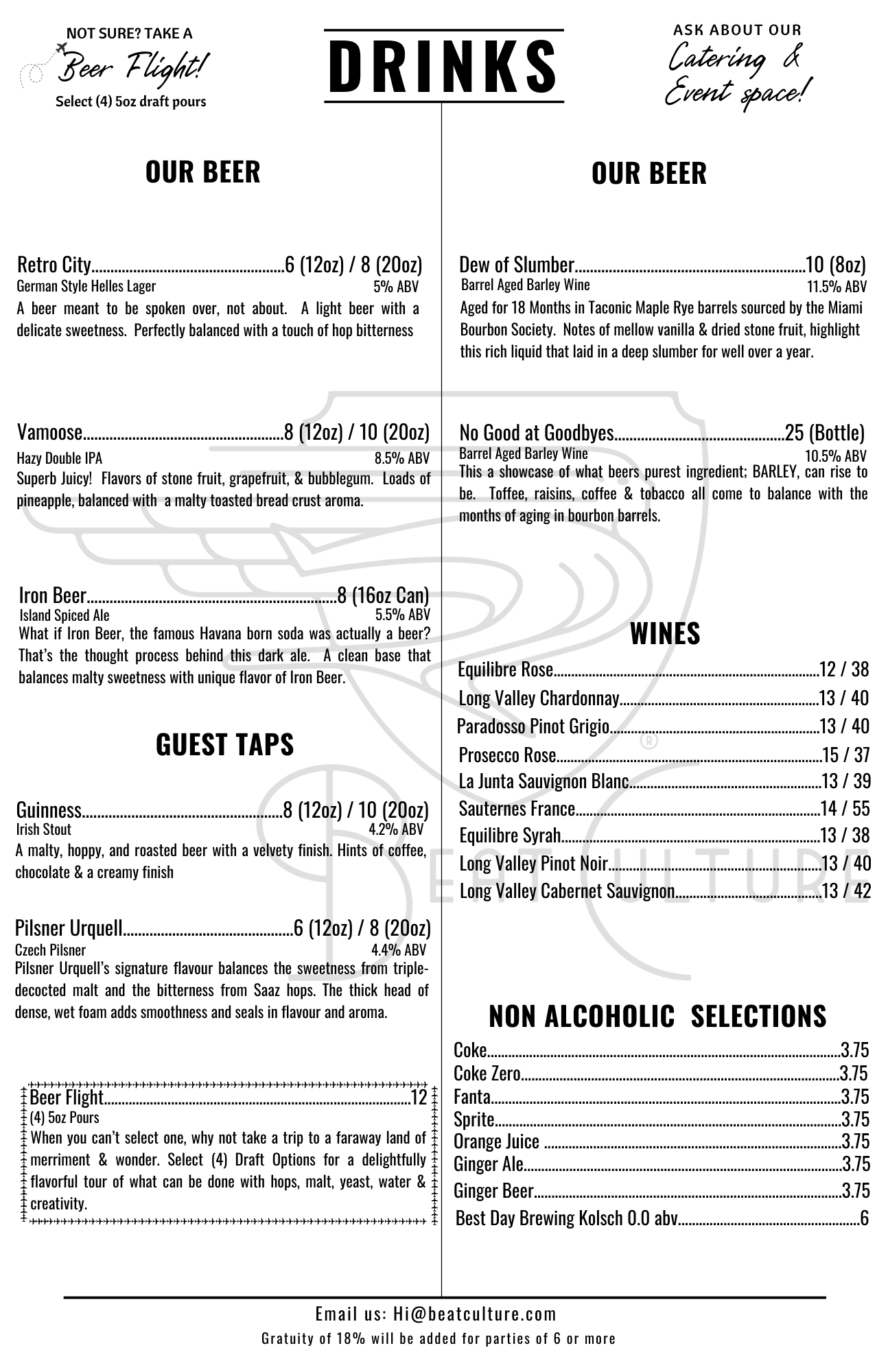 | bēt kul-chər | . 1 . A craft brewery located in Miami, Florida. 2. Creators of all things fermentable. 3. Full kitchen.