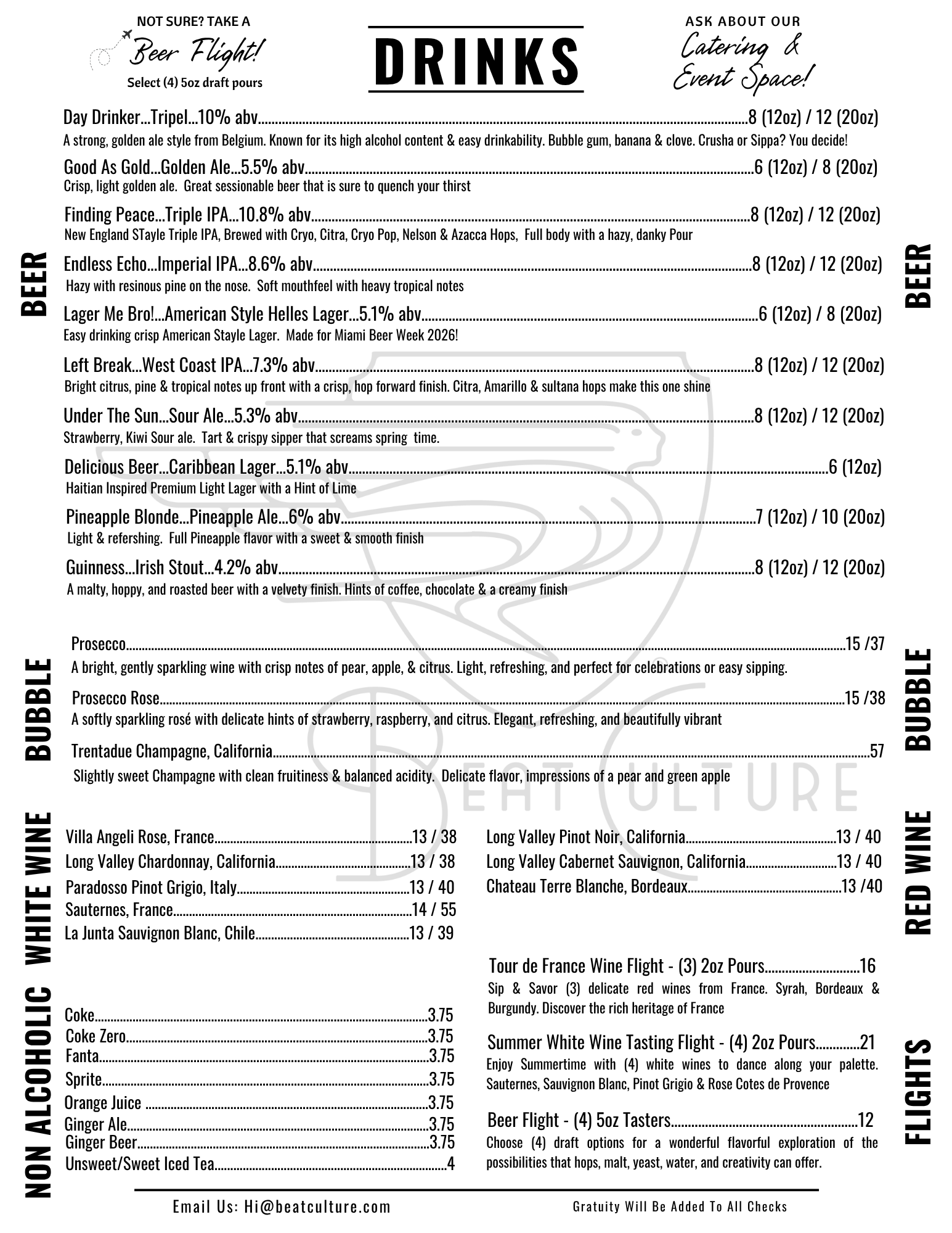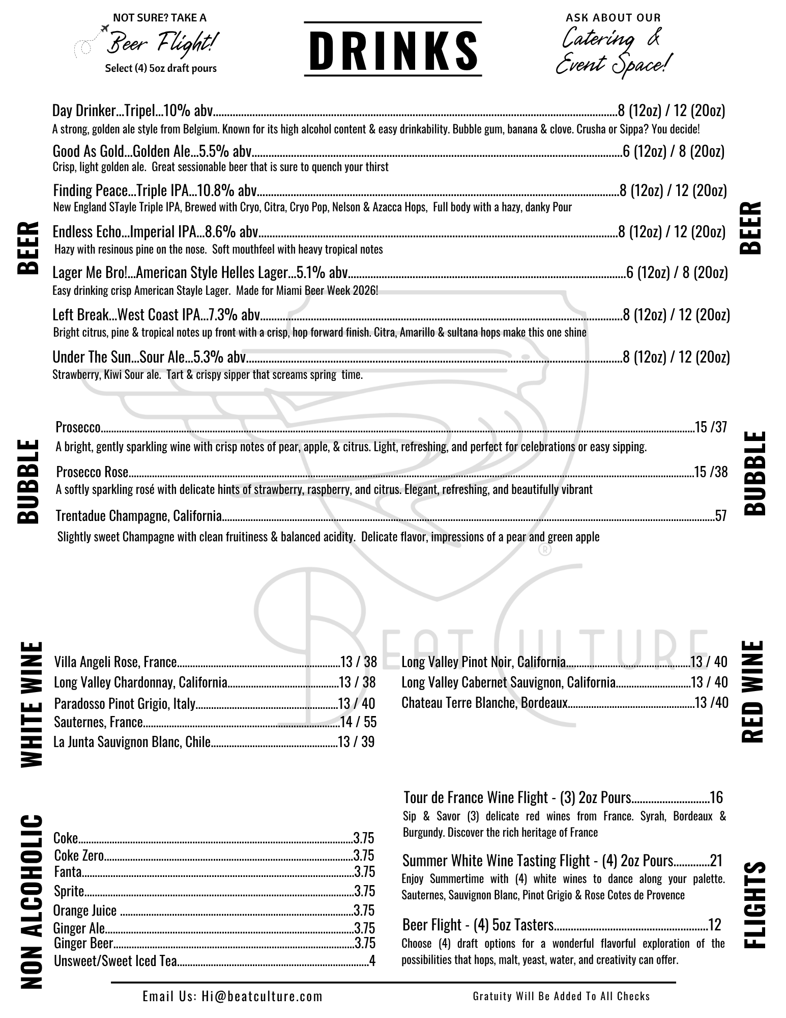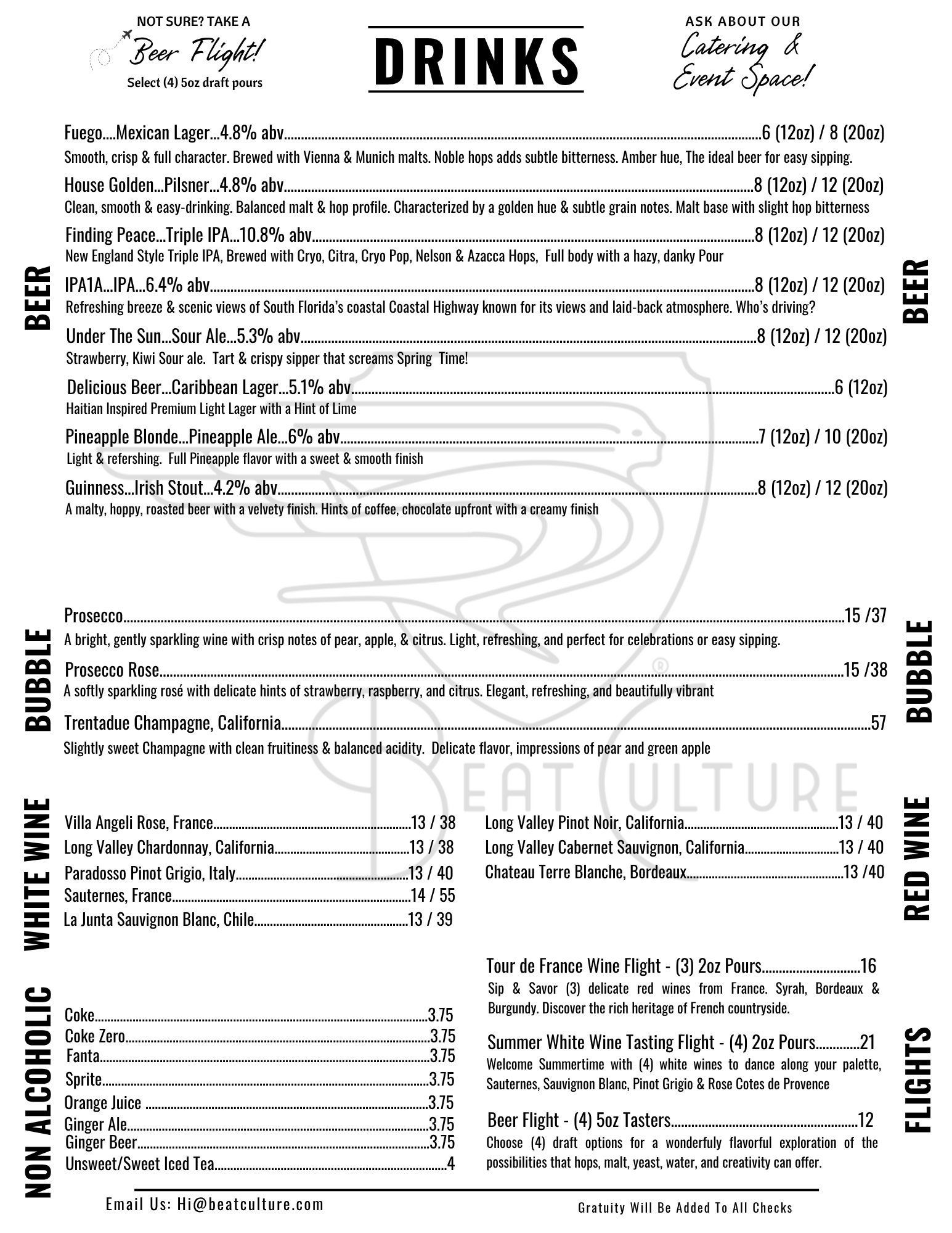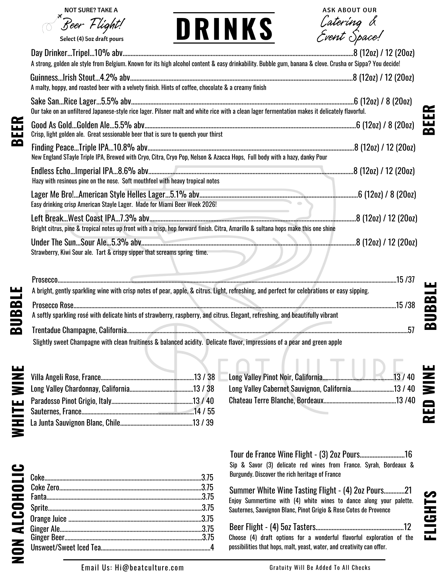 | bēt kul-chər | . 1 . A craft brewery located in Miami, Florida. 2. Creators of all things fermentable. 3. Full kitchen.