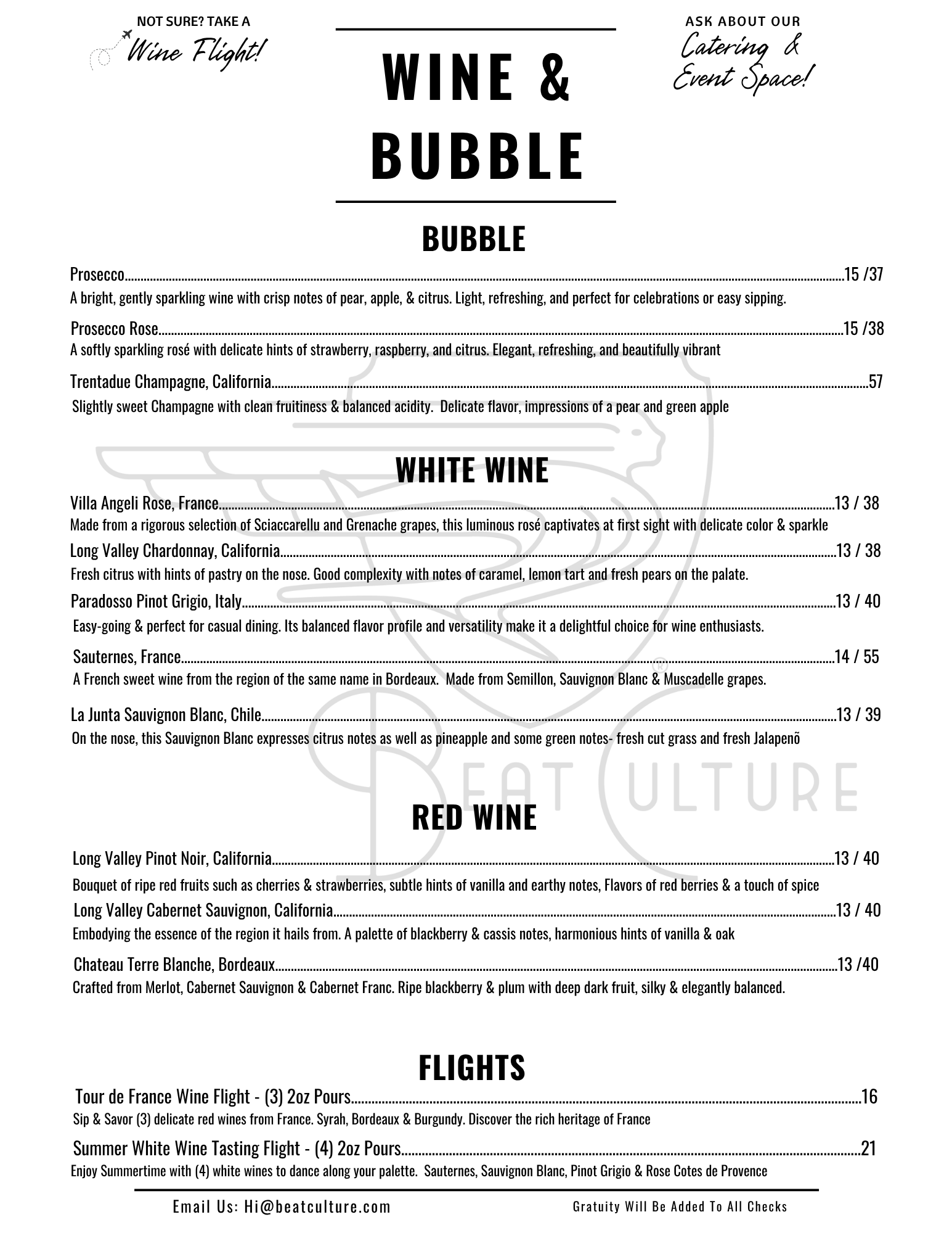 Wine & Bubble Menu