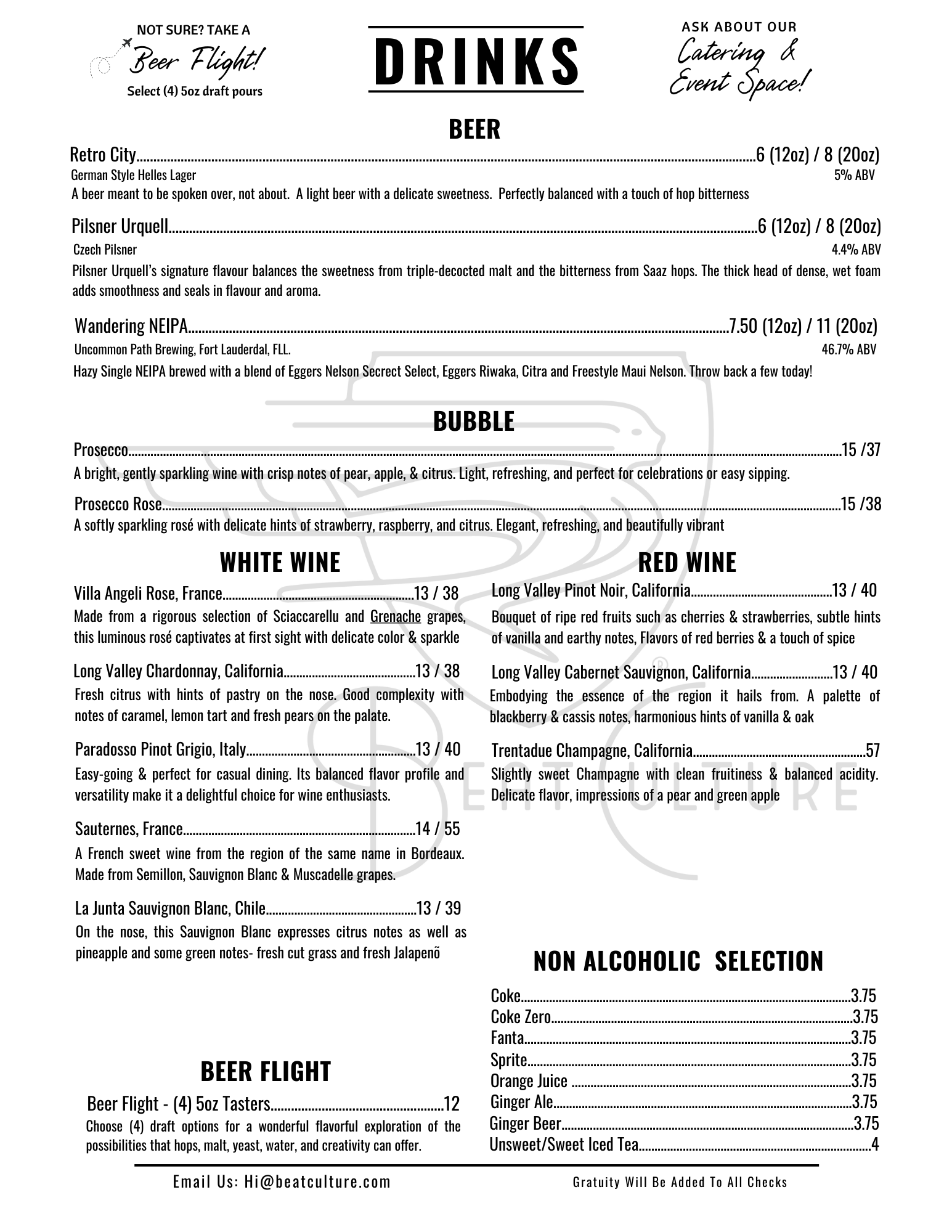 | bēt kul-chər | . 1 . A craft brewery located in Miami, Florida. 2. Creators of all things fermentable. 3. Full kitchen.